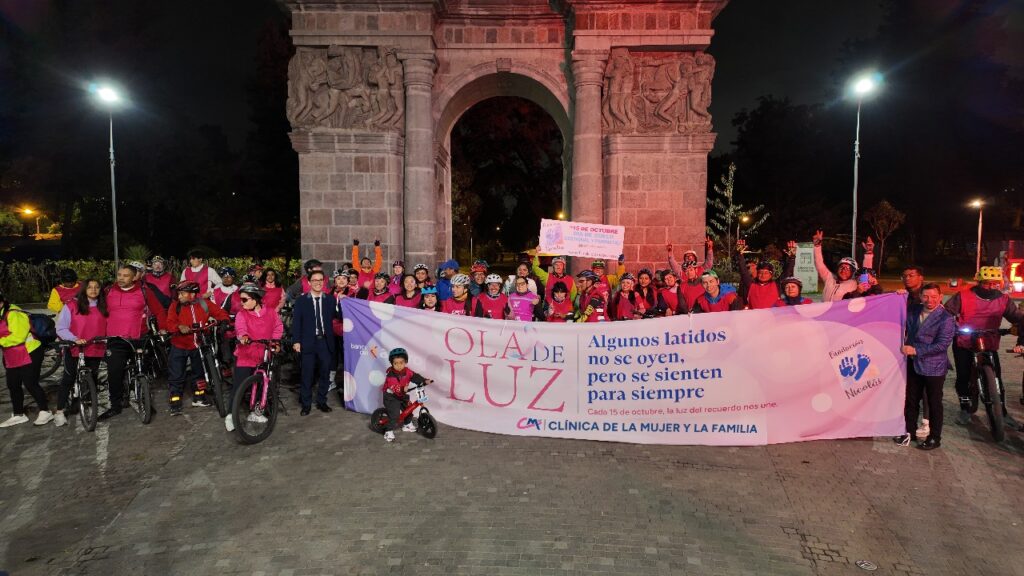 Ciclistas y familias recorrieron la ciudad desde la Clínica de la Mujer y la Familia, ubicada en la Av. Amazonas y Gaspar de Villarroel, hasta el Arco del Parque El Ejido, donde todos juntos alzamos nuestras voces y corazones en honor a los bebés que partieron muy pronto.