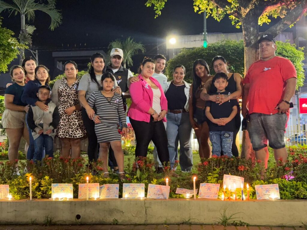 Con profundo respeto y ternura, en El Carmen se iluminó el Parque Central con velas y luces.