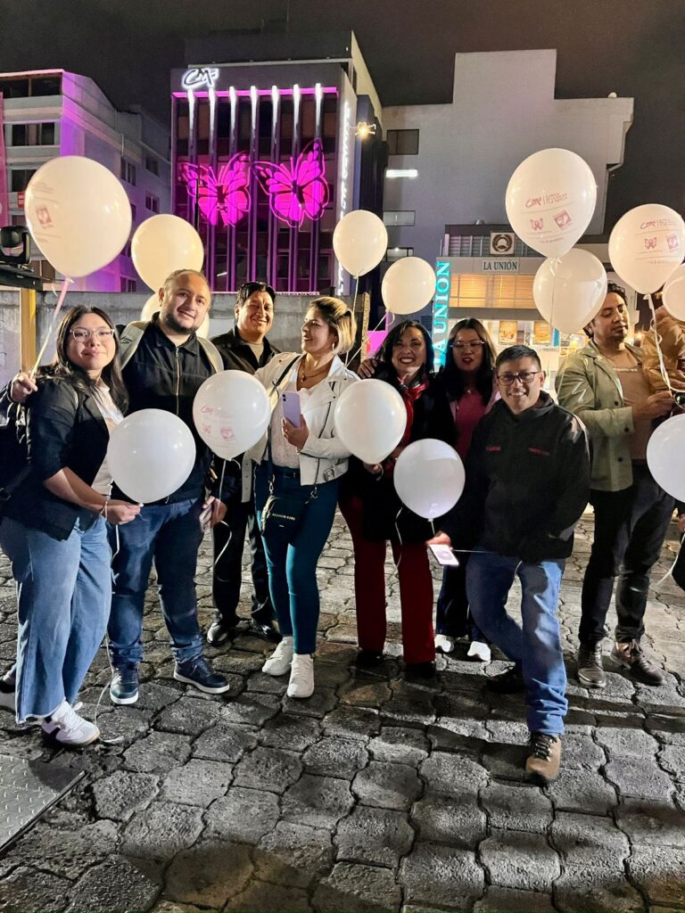 En la Clínica de la Mujer también se realizó la Ola de Luz, iluminando sus instalaciones y conmemorando a cada mamá y papá en duelo. Globos blancos se elevaron al cielo como símbolo de amor eterno y esperanza.
