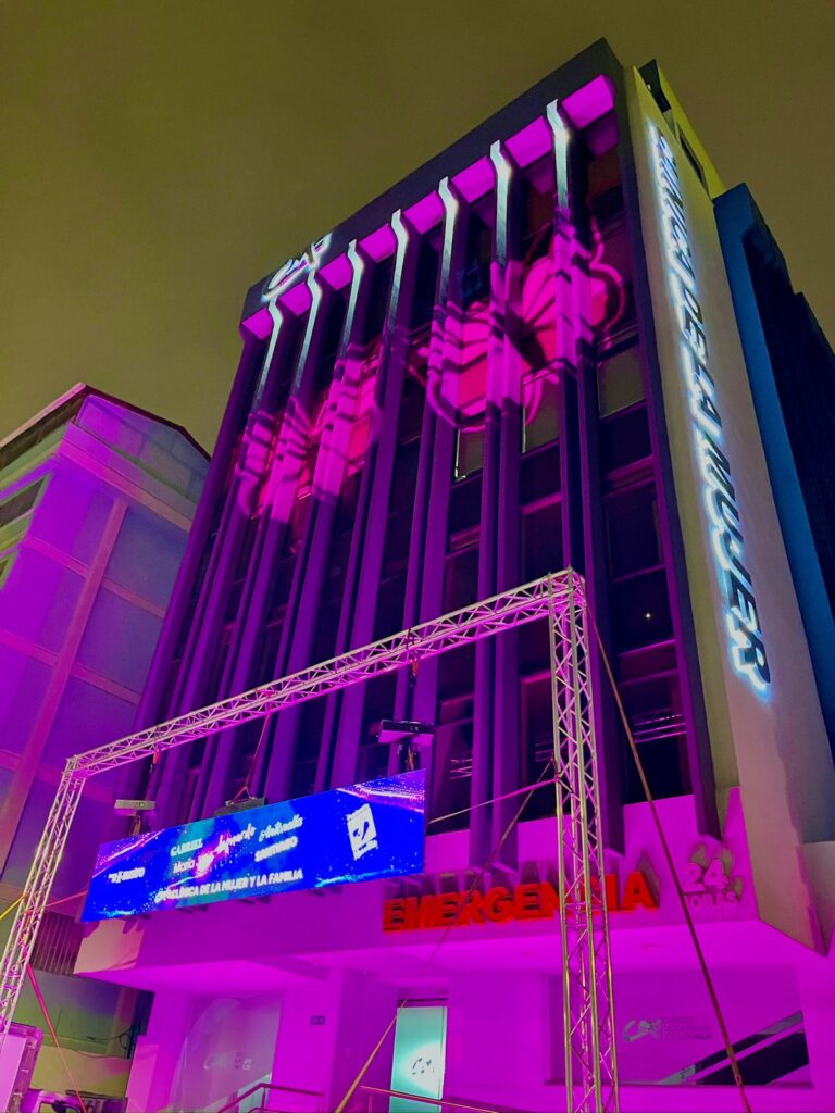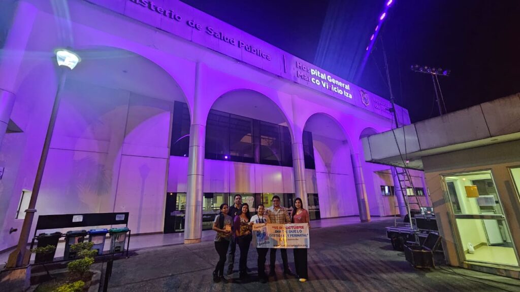 En el Hospital Marco Vinicio Iza, la fachada se iluminó para conmemorar el Día Internacional del Duelo Gestacional, Perinatal y Neonatal.